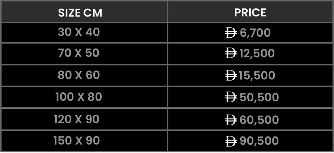 Clients may entrust Mai with full creative freedom to design original compositions or distinctive backgrounds, developed through a series of conceptual sketches before the final artwork. Reference photos provided by the client are thoughtfully integrated, reflecting Mai’s signature style seen in her exhibited works and public art shows.The following sizes and costings are guide, for: